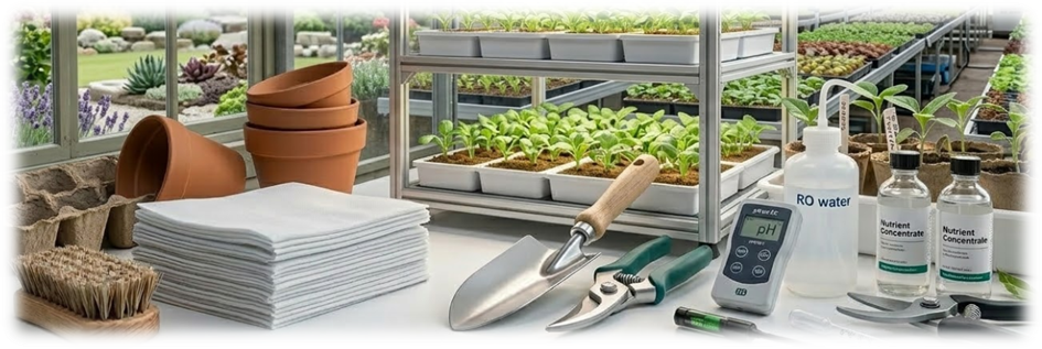 Při údržbě se hodí i specializované přípravky určené na čištění a dezinfekci pěstebních pomůcek, povrchů nebo techniky. Některé jsou vhodné na pravidelné ošetření pracovních ploch a vybavení, jiné se hodí spíš pro zavlažovací systémy nebo uzavřené prostory. Důležité je vybírat je podle toho, k čemu jsou určené, a používat je podle doporučení výrobce.