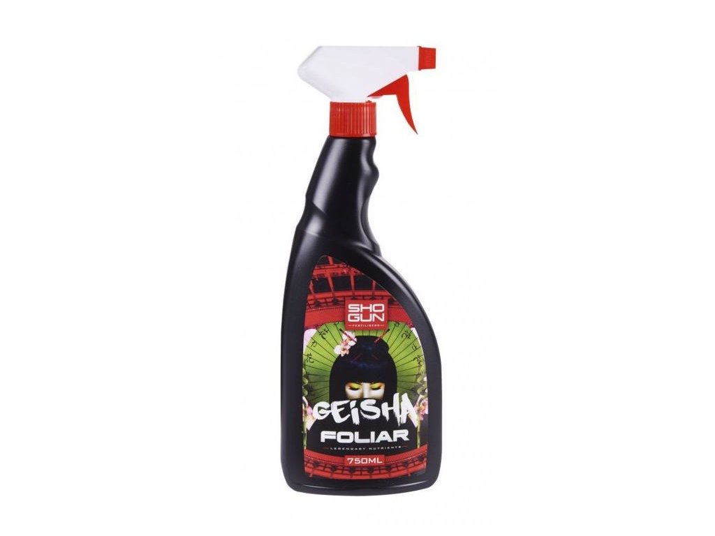 Listové hnojivo Shogun Geisha Foliar je kombinace jedinečných přísad určených k posílení a iniciaci receptorů pro kvetení a ke zvýšení výnosů a hmotnosti plodin. Zvyšuje absorbci vody a celkový metabolismus rostliny. Použitím Shogun Geisha Foliar během růstové fáze vznikne až o 5% více květů. Při použití během fáze květu se zvýší růst květů a plodů. Shogun Geisha Foliar stimuluje metabolické cesty rostlin a tím zlepšuje celkovou kvalitu plodin. Vhodné pro použití ve vegetační i květové fázi bez rizika poškození rostlin. Aplikuje se jako postřik každé dva týdny. Shogun Geisha Foliar se dodává namíchaný a připravený k použití, není nutné ho dále ředit ani upravovat hodnotu pH roztoku.