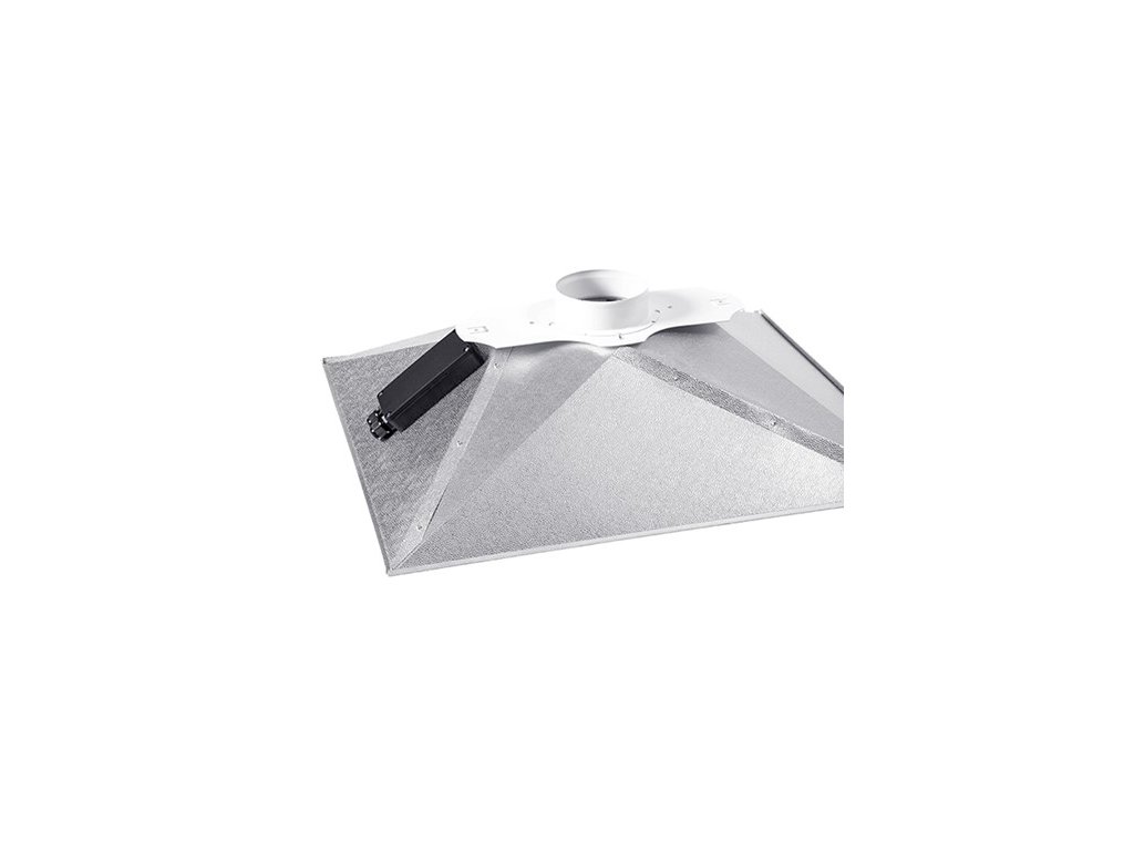 Malé průmyslové stínidlo Adjust-A-Wing Defender S vyrobené z hliníku s bílou reflexní povrchovou úpravou. Nabízí přibližně 86% odrazivost a rozměry 54 × 38 cm. Dodává se bez kabelu.