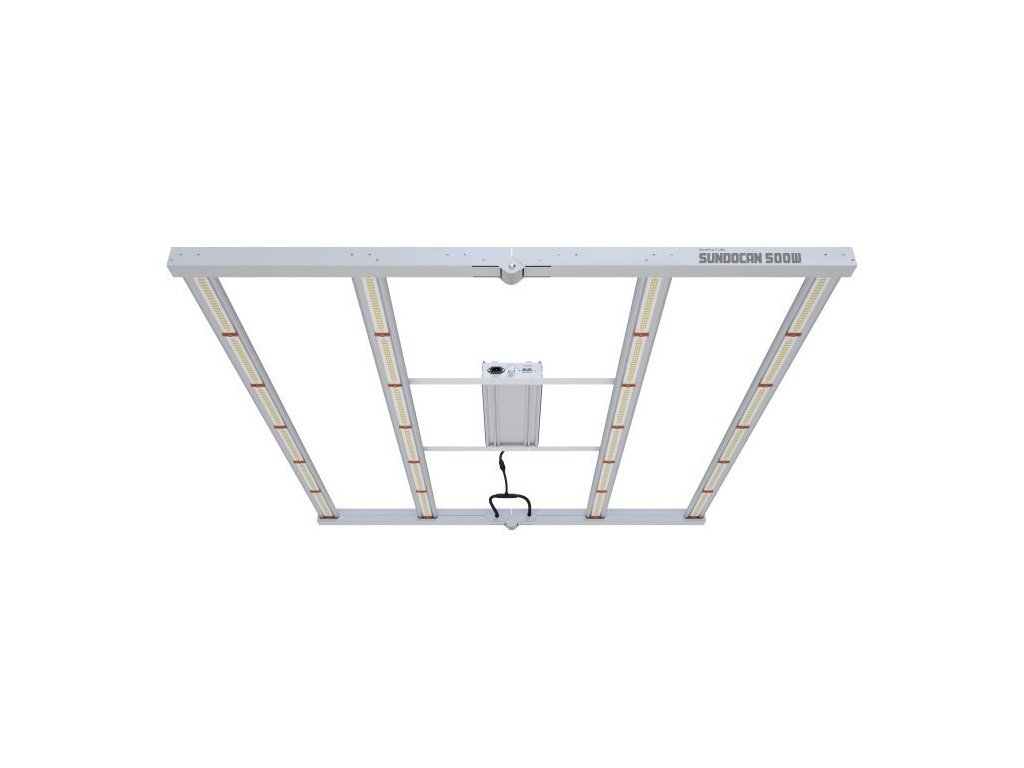 SunPro LED SUNDOCAN 500W je nejnovější lineární svítidlo s několika libovolně vyměnitelnými panely o šířce 120cm, které produkují vysoký světelný tok PPFD: 1525µmol/s a účinností 3,05µmol/J. Vyvinuto speciálně pro cannabis CBD produkci.