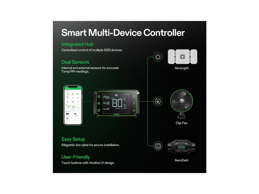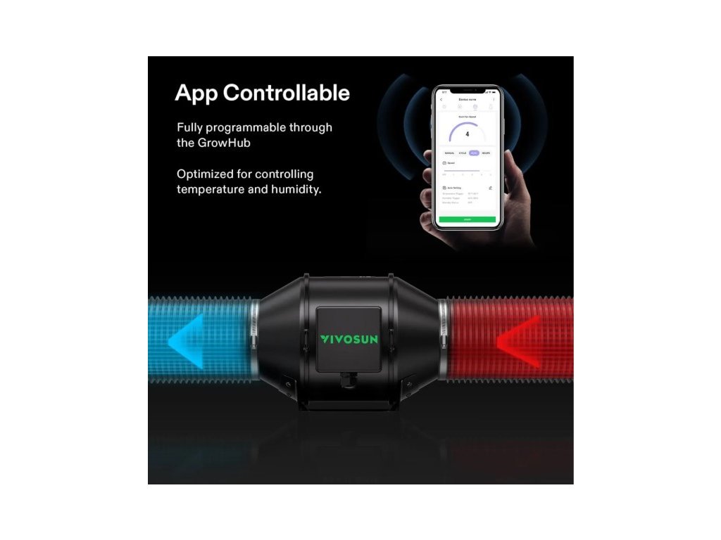 Ventilátor je kompatibilní se systémem GrowHub Controller E42A, díky kterému se stává součástí plně automatizovaného ventilačního řešení. Prostřednictvím Wi-Fi připojení a aplikace VIVOSUN je možné ventilaci vzdáleně monitorovat a řídit, nastavovat časové programy nebo reagovat na data ze senzorů teploty a vlhkosti. Automatizace pomáhá udržovat stabilní klimatické podmínky bez nutnosti ručních zásahů.